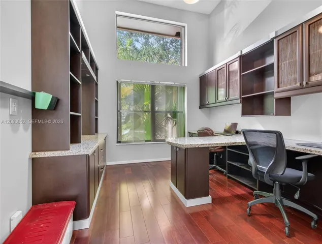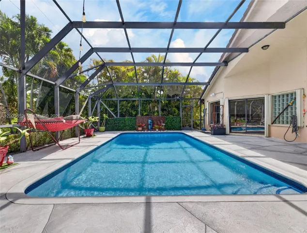 Rare single-story CBS construction — 3,394 sq ft. 4 bedrooms | 3 fully renovated bathrooms, Soaring vaulted ceilings throughout main living areas, Oversized heated pool with new heat & cold pump system,Exceptional private backyard on 13,050 SF lot — north-facing, Large-format polished porcelain tile throughout, Private den/office with French doors & built-in cabinetry, 2-car garage | HOA only $700/quarter, Country Isles — top-rated Weston school district