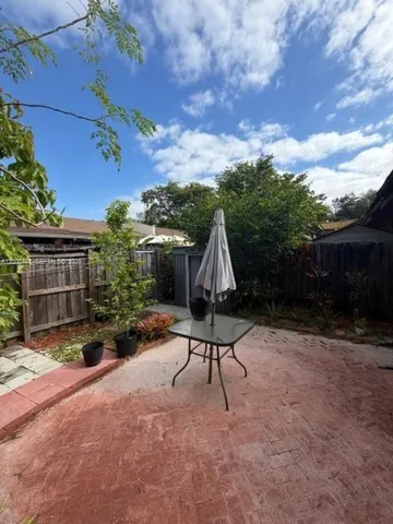 Welcome to this charming 2-bedroom, 2-bathroom end-unit townhome located in the Cedarwood community of Pembroke Pines. This unique residence features a spacious layout with a versatile loft area, perfect for additional storage or flex use. As you enter, you’re greeted by a warm and inviting living and dining space highlighted by stunning vaulted cedar ceilings with exposed beams that extend throughout the main living area and into the primary bedroom, creating a cozy yet open atmosphere. The kitchen offers ample cabinetry and countertop space, along with a convenient in-unit washer and dryer setup. The layout is ideal for everyday living and entertaining, with a natural flow from the kitchen into the dining and living areas. Step outside to a private, spacious patio surrounded by greenery and fruit trees—perfect for relaxing or hosting guests. This end-unit provides added privacy and natural light, making it feel even more inviting. The community features a low HOA of just $124/month and maintains a no-leasing policy for the first two years of ownership. Conveniently located just minutes from Pembroke Lakes Mall, Memorial Hospital West, and C.B. Smith Park, this home offers a great blend of character, comfort, and location.