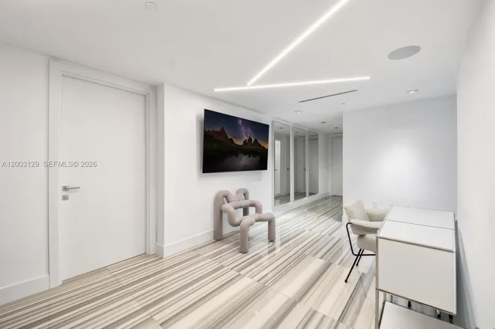 An oversized one-bedroom, 1.5-bath sanctuary, Residence 903 at Echo Brickell, designed by Carlos Ott and developed in partnership with JDS and PMG, delivers a level of scale and finish rarely found in Brickell. Spanning over 1,200 SF, the residence has been thoughtfully reimagined into a true one-bedroom retreat, featuring an expansive living area and a separate den that effortlessly functions as a private office or media lounge. Interiors are rich in texture and detail, highlighted by Venetian plaster walls, sleek marble flooring, custom ceiling lighting, and a fully integrated smart home system with wired audio and power shades throughout. The kitchen is both sculptural and functional, outfitted with premium Wolf and Miele appliances, designed for both everyday living and elevated entertaining. A defining feature is the 600 SF terrace, an outdoor extension of the home rarely seen at this scale in Brickell. Complete with a built-in BBQ, it invites seamless indoor-outdoor living, set against warm sunset light and open Biscayne Bay views. Echo Brickell offers a boutique, white-glove lifestyle with a full-floor spa and wellness level, state-of-the-art fitness center, and resort-style pool. The 44th-floor sky lounge is a true showpiece, with sweeping views of Miami Beach and a one-of-a-kind rooftop pool. Residents enjoy 24-hour concierge, complimentary pet walking, and chauffeur service.