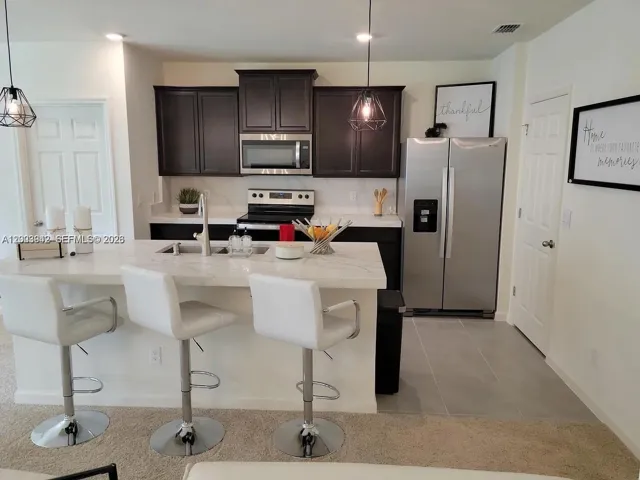 Beautiful New Construction single family home in Celebration Pointe available for immediate occupancy unfurnished. Enjoy this 3br/2ba home with over 1700 sq ft of living space. Updated fixtures, stainless kitchen appliances, large walk-in pantry, volume ceilings, glass shower doors, quartz countertops in the kitchen and bathrooms, fenced backyard with covered patio. Newly fenced for additional privacy. All major appliances included. Community pool with lounge area. Easy highway and beach access. Nonrefundable pet deposit. Pest control included.