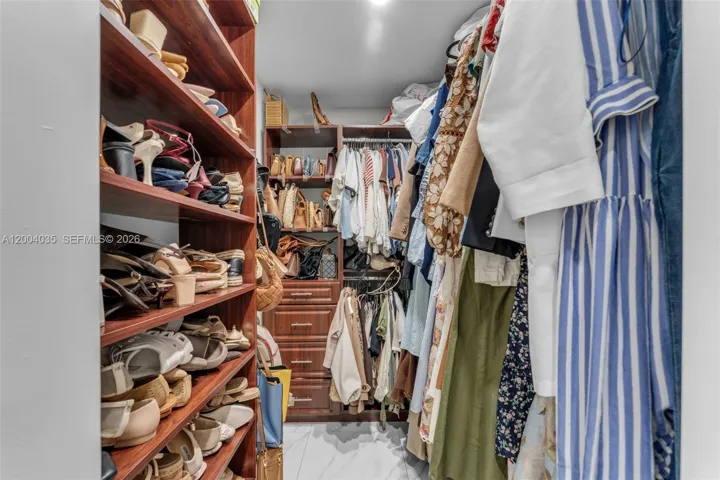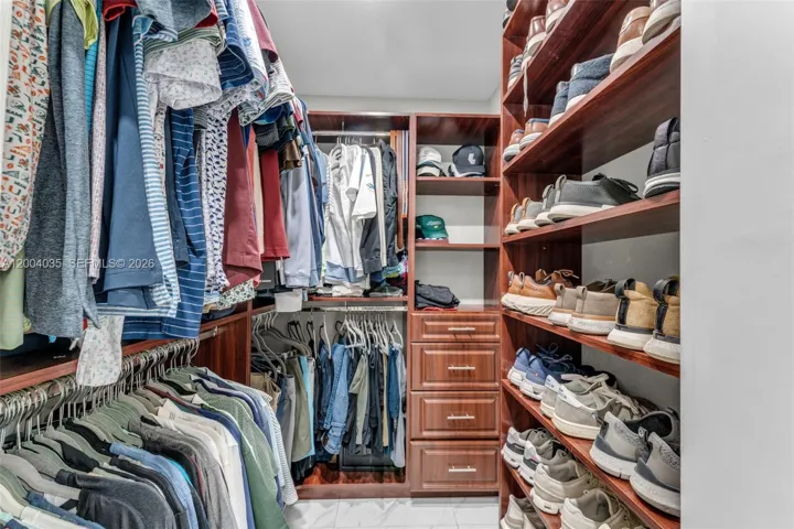 Completely remodeled 4 bedroom, 2.5-bath luxury residence showcasing exceptional design and high-end upgrades throughout. Featuring soaring ceilings and elegant marble flooring, this home offers a bright, open layout with a formal living area and custom built-in fireplace with TV mount. The designer kitchen features custom white and oak cabinets, Calacatta stone countertops with full backsplash and waterfall island, and high-end black stainless steel appliances including double oven, induction cooktop, and built-in microwave. A coffee station, wine bar, and wine fridge complete the space. Spacious bedrooms include custom-built closets and window treatments with blackout blinds. The primary suite offers a spa-style bathroom with freestanding jetted tub, double vanity with makeup station, brass fixtures, towel warmers, and a smart toilet. Secondary bathrooms are fully upgraded with modern finishes.