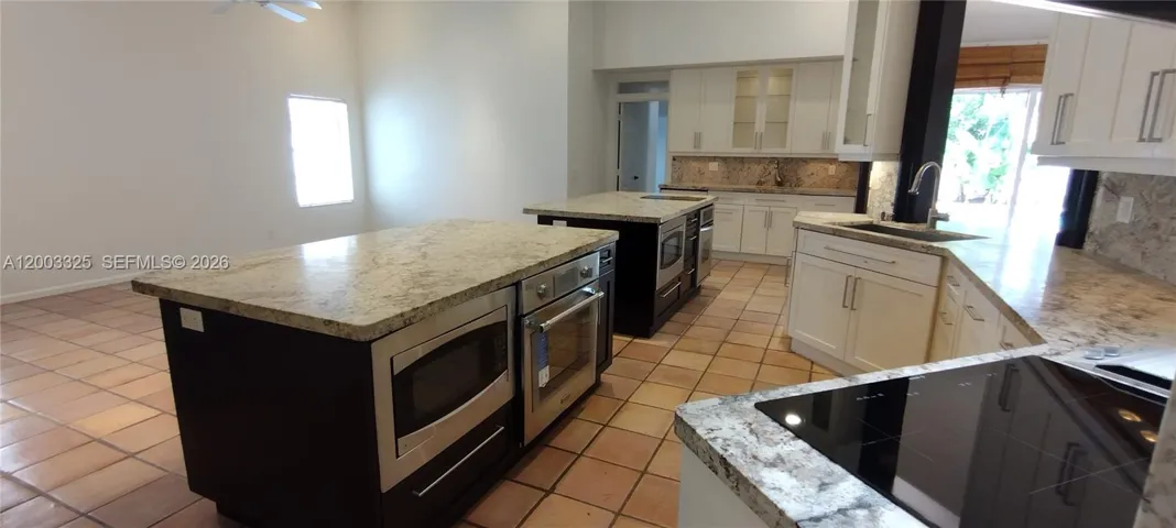 Move-in ready with no association approval required. The oversized kitchen is ideal for entertaining and features a dedicated kosher prep area with double ranges, microwaves, refrigerators, and sinks.