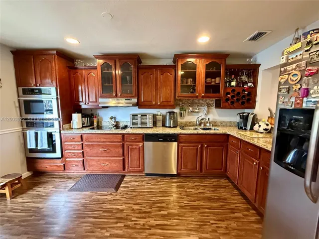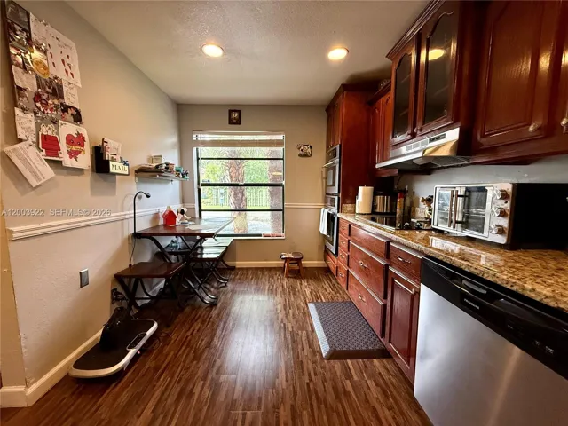 The kitchen is equipped with stainless steel appliances and granite countertops. Spacious laundry room with excellent storage and like-new washer and dryer. A/C unit is approximately 2 years old.