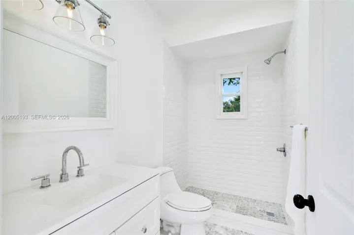 This stunning 3-story, 4-bedroom, 4-bath courtyard villa with a versatile room is located on a premier, quaint street in South Coconut Grove. Behind a walled & gated entrance, enter through exquisite Spanish cedar double doors into a perfectly designed split floor plan filled with an abundance of natural light. French doors open to a pristine lap pool & lush, private grounds with a covered outdoor space, creating seamless indoor & outdoor living. The kitchen features a gas range, with impact windows & doors throughout. The second-floor primary bedroom includes an ensuite bath. A separate private studio apartment offers a full bedroom & bathroom with its own grand exterior staircase. The third-floor tower suite is ideal for a home office or den.