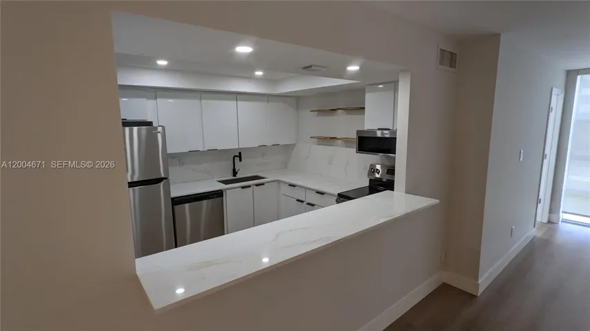 Best value renovated 2 bedroom, 1.5 bathroom condo in Three Islands offering 924 sqft of modern, move in ready living. Features a bright open layout with updated kitchen, new appliances, cabinetry, flooring, and clean contemporary finishes throughout. Convenient first floor access.