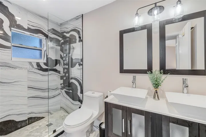 The split floor plan offers privacy and comfort, featuring a completely remodeled kitchen with modern finishes, sleek cabinetry, and updated appliances. A convenient laundry room under air adds to the home’s functionality. The expansive primary suite boasts a beautifully renovated bathroom, walk-in closet, and direct access to a spacious covered patio.
