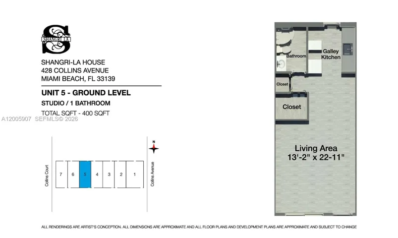 Welcome to the SHANGRI-LA RESIDENCES, located in the trendy South of 5th neighborhood of South Beach! 1 block to the ocean, world-class dining, shopping & free trolley! 1st Floor, unfurnished studio. Hurricane impact windows and doors with blinds! Free use of on-site laundry! **RENT INCLUDES** Complimentary SAVOY BEACH CLUB MEMBERSHIP on Ocean Drive with access to resort style swanky pools, a beach chair in the sand & small gym (FREE -a $75/day value) Residential street parking or based on availability $225/month at 555 Washington Ave or 500 Collins Garage. Pet Friendly – 1 small pet with $250 pet deposit & $250 non-refundable pet fee. Fast approvals for well qualified tenants. Ready to move in.