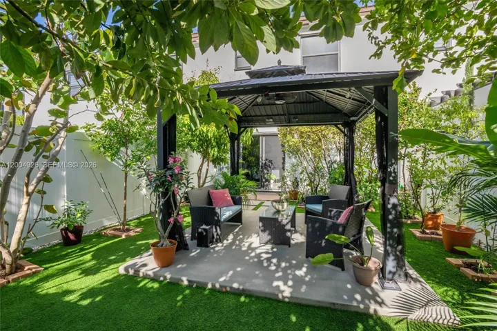 Stunning 3-bedroom, 2.5-bath townhouse in the desirable Aquabella community in Hialeah. Built in 2021, this move-in ready home features a bright, open layout with imported Spanish porcelain flooring on the first floor. The kitchen offers quartz countertops, stainless steel appliances, ample counter space, and a modern feel, perfect for everyday living and entertaining. Enjoy a private patio with a covered gazebo, a rare outdoor space ideal for relaxing or hosting guests. Upstairs features comfortable bedrooms and a functional layout. Two assigned parking spaces in front. Upgrades include a higher-capacity A/C system and enhanced insulation. Resort-style amenities include clubhouses, pools, fitness centers, playgrounds, and walking areas. Conveniently located near major highways, shopping, and dining.
