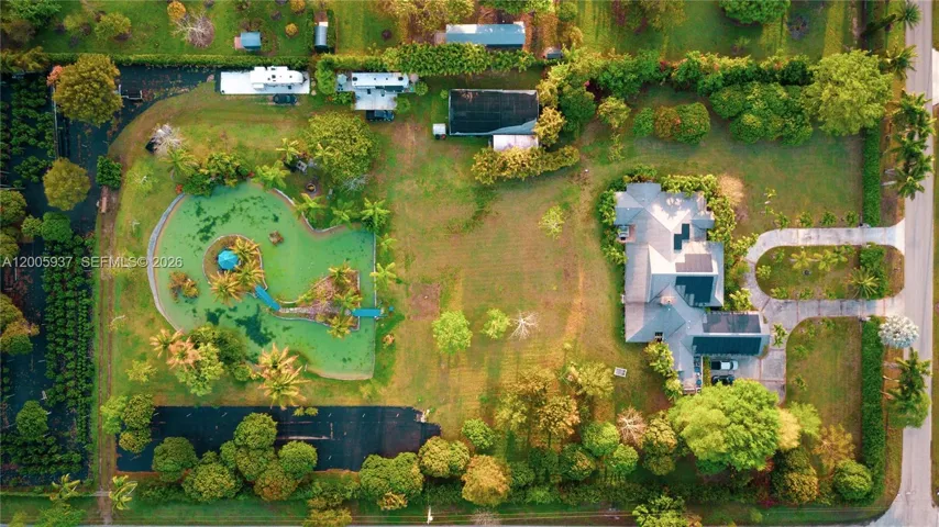 • The estate features a modern single family residence with a total area of 6,898SF with newer roof (2023) and massive Solar Power System all on a sprawling 5 acre corner lot.