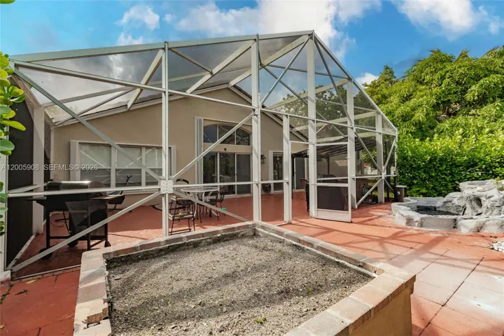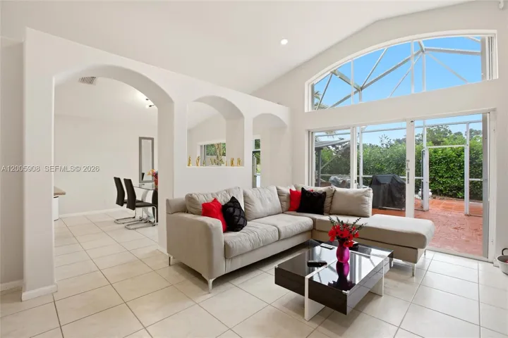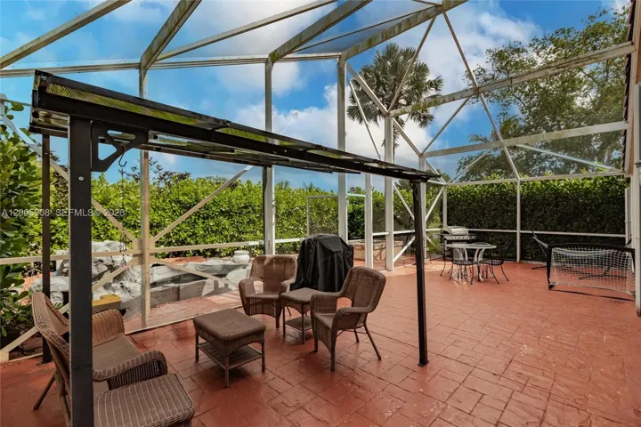 Screened patio overlooking the lake and golf course—perfect for relaxing year-round.