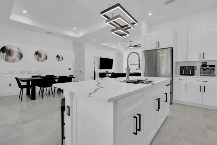 Welcome to this beautifully designed single-family home offering 3 bedrooms, 3 bathrooms, and 1,942 sq ft of living space, perfectly situated on a spacious 0.38-acre cul-de-sac lot. This open-concept home features a modern layout ideal for both everyday living and entertaining. The gourmet kitchen is the heart of the home, showcasing a large quartz island, shaker cabinets, and sleek finishes that continue throughout the bathrooms. The primary suite is a true retreat with a luxurious bathroom featuring double sinks, a separate soaking tub, and a walk-in shower. Additional highlights include impact windows, recessed lighting, and epoxy flooring in the garage for a clean, polished look. Step outside to enjoy the tiled lanai and fully equipped outdoor kitchen—perfect for Florida living and hosting guests year-round. This home combines style, comfort, and functionality in a desirable cul-de-sac location with plenty of space to enjoy both indoors and out.