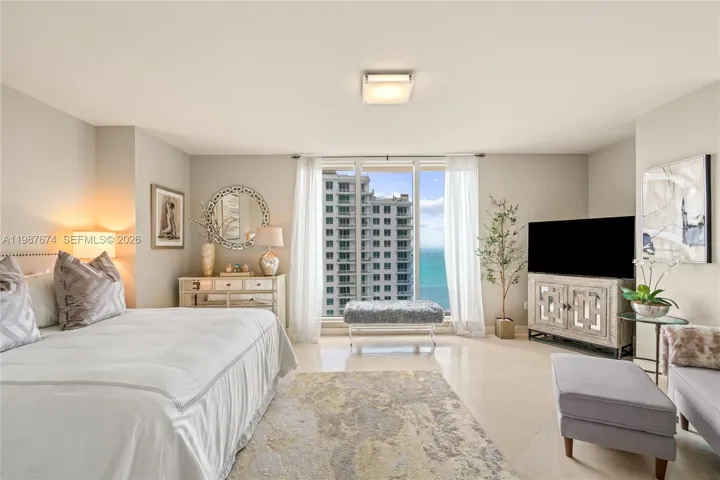 Perched high above the city, this exceptional residence offers sweeping panoramic views of Biscayne Bay and the Miami skyline from every room. The gourmet kitchen is a true centerpiece, featuring custom Brazilian quartzite countertops, full backsplash, and a waterfall island, complemented by a sleek induction cooktop and a custom bar with a dual-zone 24-bottle wine refrigerator. Elegant marble flooring flows seamlessly throughout, enhancing the home’s refined aesthetic. Residences comes with 2 parking spaces and a storage unit. Located in Carbonell, residents enjoy a private island oasis with resort-style amenities, including two tennis courts, a golf putting green, indoor racquetball and basketball courts, a heated pool and jacuzzi, BBQ area, concierge services, complimentary guest valet, a children’s playroom, two-story fitness center, party room, conference room, and business center. Experience elevated island living in the heart of Miami.