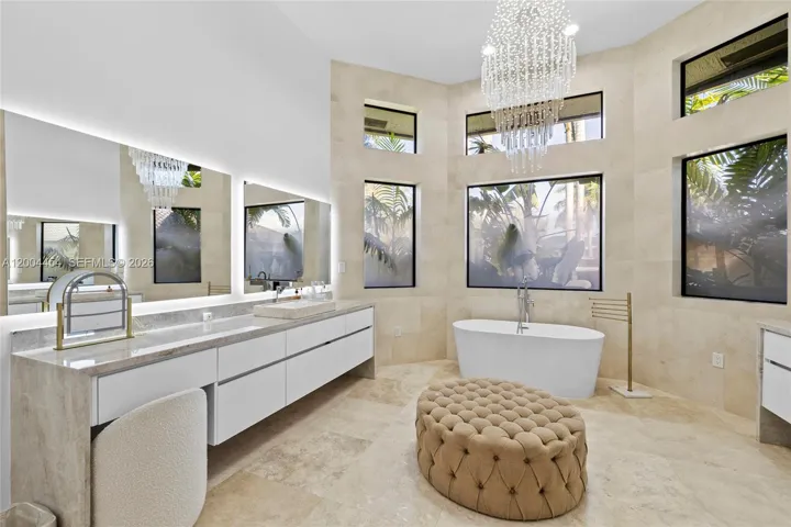 Additional highlights include: A four-car garage, expansive living room, impact windows and doors, smart-home technology, security cameras, and an outdoor lounge with a stunning summer kitchen overlooking the pool.
