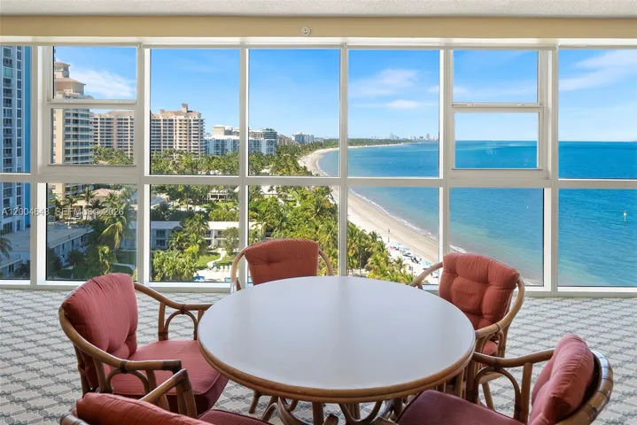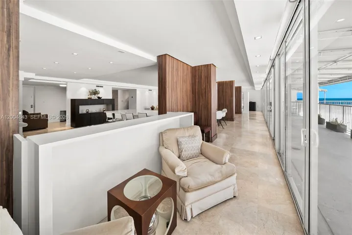 The layout is designed for modern living, with a beautifully renovated kitchen seamlessly integrated into the living and dining areas, all framed by floor-to-ceiling windows that bring in natural light and highlight the ocean views. A wide wraparound balcony extends across the residence, connecting the main living areas and primary suite, and enhancing the indoor-outdoor experience. Impact windows, marble floors, impeccable conditions, just painted.