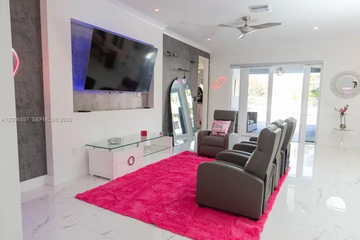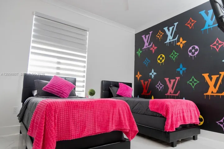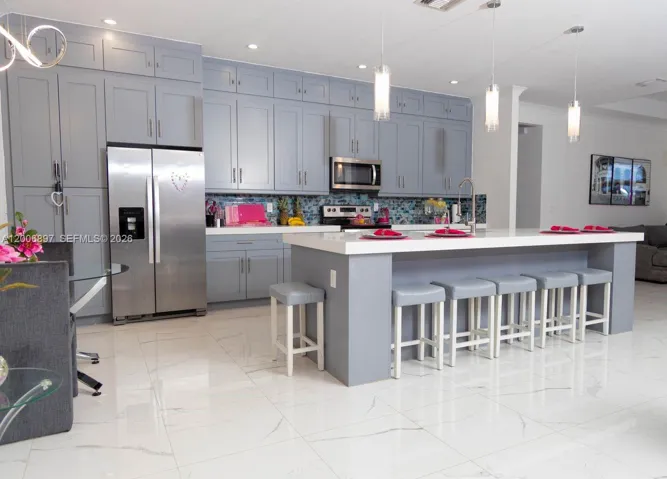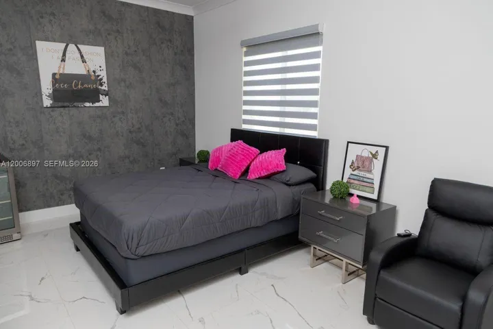 New Construction – Fully Furnished Rental Enjoy this stylish Redlands ranch, perfect for the whole family. This stunning 5-bedroom, 3-bathroom home sits on a spacious 1-acre lot and is fully furnished, offering comfort, style, and convenience in every detail. This beautiful new construction property features modern upgrades throughout, including tiled floors, high ceilings, and elegantly designed bedrooms, all equipped with double beds and TVs. The home offers bright and spacious living and dining areas, along with an open-concept kitchen featuring quartz countertops, a breakfast area, and top-of-the-line stainless steel appliances. The outdoor space is truly exceptional, with a large patio, covered terrace overlooking the pool and canal, a jacuzzi spa, and a tiki bar complete with a pool table—perfect for entertaining. The property also includes a front porch, porte-cochère, and a driveway with space for up to 10 cars.