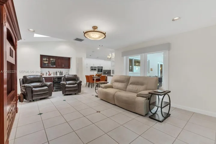 Welcome to this beautiful residence in the highly sought-after Falls neighborhood. A charming porte-cochère welcomes you home, offering shade & protection from the rain. Custom wrought-iron gates on both sides of the front entry—as well a custom railing inside the foyer—add a touch of elegance as you step into the formal living and dining rooms, highlighted by volume ceilings and an airy, inviting feel. Elegant impact glass double door entry.