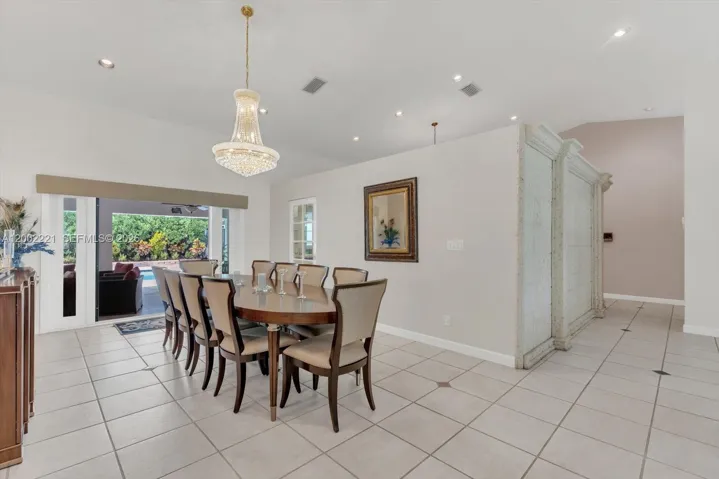 This spacious split-floor-plan home features 5 bedrooms & 3.5 baths, including a bedroom currently used as an office plus a flex room with serene pool views—ideal for quiet, Zen-inspired moments. The home is equipped with a newer tiled roof (2018) and full impact windows and doors throughout. The updated primary bathroom includes a large spa tub perfect for unwinding and relaxation. The updated kitchen offers a cooking island, breakfast area, and excellent flow to the surrounding living spaces. A very convenient utility/storage room adds everyday practicality. Natural lighting fills the home, creating a warm and pleasant ambiance.