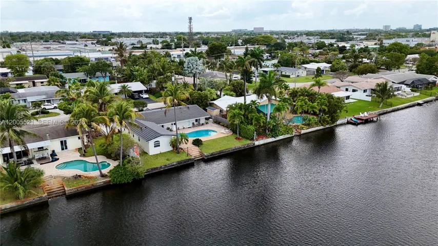 Wake up to a beautiful waterfront breeze every morning in this resort-style pool estate with NO HOA, just 5 minutes to the beach. Offering the ultimate Florida lifestyle, this home features 4 bedrooms, 3 bathrooms, a 2-car garage, and a circular driveway with ample parking. Enjoy true waterfront living with one of the best, longest lake views—kayak, boat, and park your boat right in your backyard with a private seawall, plus a spacious green area perfect for grilling and outdoor entertaining. Inside, the open and airy layout showcases porcelain tile flooring designed to resemble wood, with an eat-in kitchen, formal dining, and formal living areas flowing seamlessly for comfort and style. Impact windows and doors, a cozy fireplace, and a gas cooktop add both elegance and function. The expansive primary suite features a custom walk-in closet and a spa-like bathroom with soaking tub, separate shower, and tranquil water views. Recent upgrades include a New concrete tile roof and New A/C. Ideally located near top private schools including Pine Crest, Westminster Academy, Calvary Christian Academy, & near renowned restaurants like Thai Spice, and within walking distance to Publix, plus just minutes to Jaco Pastorius Park, Funky Buddha Brewery, and Holy Cross Hospital. A rare opportunity to own waterfront living with no HOA restrictions—relax, fish, and enjoy Snook, Tarpon, Jack, and Snapper right from your backyard.