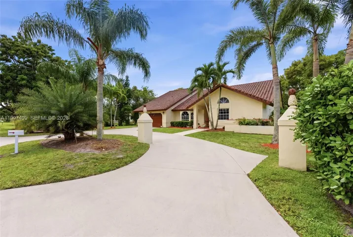 Rare Opportunity In Plantation Acres! Situated On Over An Acre Of Lush Land And Over 3,000 Sqft This Spacious 4 Bed/ 2.5 Bath Pool Home Has A 2 Car Garage. Large Open Layout. Vaulted Ceilings. Lots Of Natural Light Throughout. Updated Eat-in Kitchen Has Granite Countertops, Tumbled Marble Backsplash, Cooktop. SS Appliances, Wall Oven, Warming Drawer. Kitchen Island, And White Wood Cabinets. Family Room Has Built-ins And Overlooks Pool And Yard Views. Primary Suite Boasts Its Vaulted Ceiling With Ceiling Fan, Walk-in Closet, And Laminate Flooring Overlooking The Pool. Primary Bathroom Has Dual Vanities, Separate Shower/Tub, Frameless Enclosure, And Slate Titles. Hall Bathroom Has Large Wood Vanity With White Countertop, Closet For Linen Storage, And A Frameless Walk-in Shower. Step Through Elegant French Doors To Discover A Private Fenced Backyard Oasis, Featuring A Newly Updated Sparkling Pool With Custom Rock Waterfall On A Travertine Patio Perfect For Both Tranquil Afternoons And Outdoor Entertaining. Mango Tree. Recessed Lighting. Roof 2017. Water Heater 2018. AC 2014/2020. Two Siemens Electrical Panels. Circular Driveway To Fit 7 Cars. No HOA! Close To American Heritage, Sawgrass Mall, Shopping, Dining and Highways. This Home Has Privacy, Land And Luxury. This One Will Not Last!!
