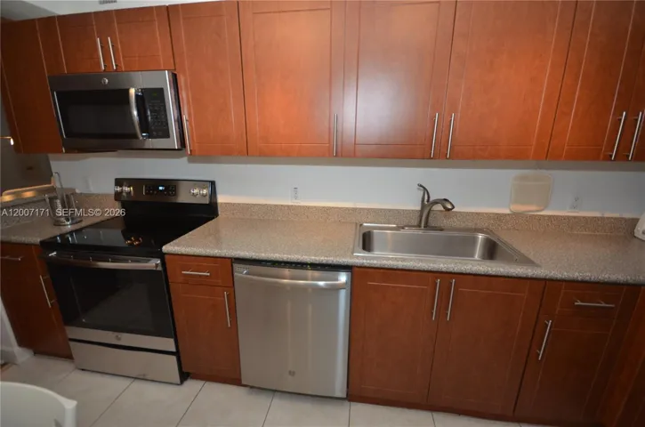 Step inside and you’ll find a fully equipped kitchen with a refrigerator, microwave, dishwasher, and stove. The open concept living and dining area is perfect for entertaining guests or simply relaxing after a long day. The unit also features air conditioning to keep you cool during those hot Miami days.