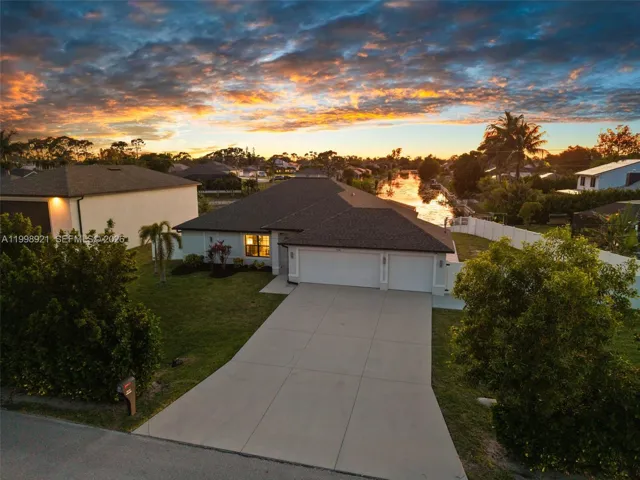 LONG WESTERN CANAL VIEWS on an INTERSECTING CANAL! 2020 BUILT HOME with CUSTOM HEATED SALTWATER POOL, DOCK WITH BOAT LIFT, A/C 3-CAR GARAGE and OVERSIZED LOT. Welcome to 1808 SW 8th Pl, a 4 bedroom, 2 bath waterfront home offering 1,718 sq ft on a beautiful intersecting freshwater canal with long water views. Set on more than a quarter acre, the property offers great outdoor space, fenced yard, lush landscaping and western sunsets.
