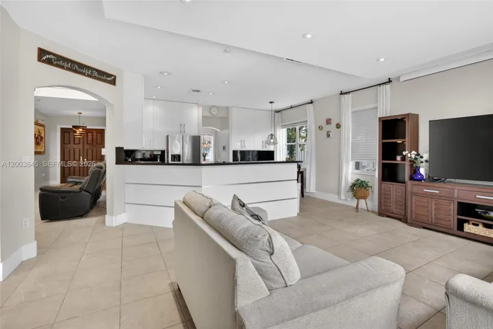 Enjoy South Florida living outdoors with an expansive covered patio, summer kitchen, refreshing freeform pool, tropical landscaping, and fully fenced grounds. Other features include accordion hurricane shutters, new washer and dryer, and a large multi-car pavered driveway.