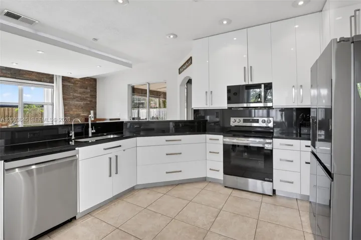 Your wait is over! Highly sought-after Paris Model pool home situated on a premium corner lot in the gated community of Keystone Lake at Pembroke Pines. This spacious 5-bedroom, 3-bath residence features an inviting open floor plan with a beautifully renovated kitchen showcasing modern European-style cabinetry, quartz countertops, a large center island with serving bar, new 2024 stainless steel appliances, and a double oven—perfect for entertaining.