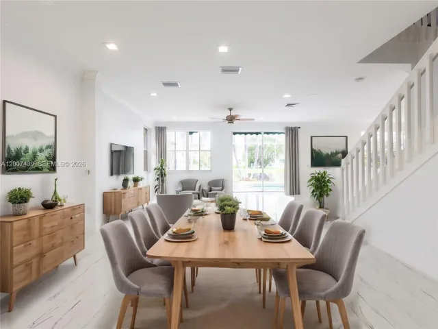 Welcome to your new home in Weston! Gorgeous, FULLY REMODELLED 4 bed/2.5 bath plus den with pool, overlooking an amazing lake view, in vibrant gated community! Enjoy stunning sunsets in the evening & direct bright sunlight in your private backyard. New porcelain floors in living areas, laminate floors upstairs. Spacious new kitchen, with St. Steel appl and white quartz counters, LED recessed lighting throughout the home. Primary bedroom with 2 walk-in closets, fully remodeled bathrooms, with modern cabinetry and lighting. This home is zoned for A schools, including Gator Run Elementary(walking distance), Falcon Cove Middle, and Cypress Bay High! Accordion shutters for easy hurricane protection. The Meadows offers resort-style amenities, basketball court, pool, playground & more. This is the one!