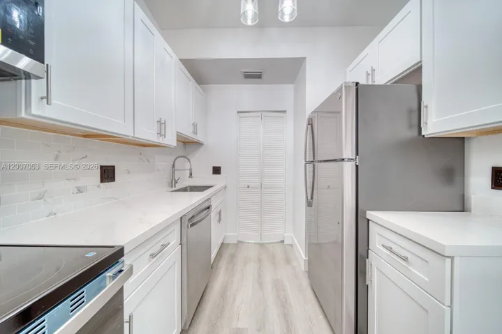 If you travel to the center of scenic tree-lined Taft Street, you’ll find a little hidden gem known as Rainbow Lakes Villas. Here you will find this lovely substantially remodeled home featuring a brand new kitchen with white cabinets, marble-designed quartz countertops and backsplash, stainless steel appliances, fixtures and hardware. The master bathroom offers a unique European-style with earthy elements of stone tile, wood cabinetry, and granite; while the secondary includes new vanity, fixtures, and more. High-end vinyl flooring flows seamlessly throughout the home. Capture relaxing moments in any weather on your paved and covered back patio. Take advantage of financial savings and energy independence with the included solar panels. Additional upgraded items include energy efficient superior-quality windows and doors; accordion shutters; Smart HVAC thermostat and alarm system; incoming brand new washer and dryer. Ideally situated near a multitude of outdoor recreational amenities, social and dining scenes. True to its nature, this charming pocket community will offer the tranquility you seek.