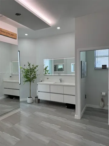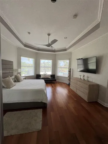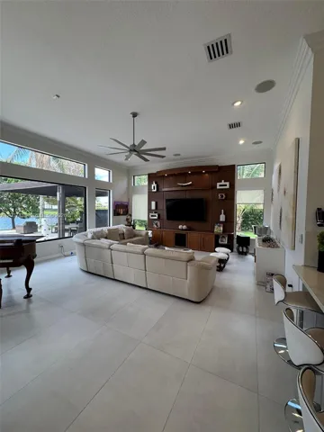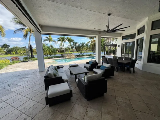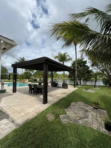 Must see home! Spacious, modern, luxury home meticulously kept in a pristine, highly desirable quiet Community. This home features an open-concept design with a scenic view of the pool area with travertine spacious patio, palm trees, large wooden gazebo and lovely lake. Enjoy cooking in a gourmet kitchen with a gorgeous view, spacious social area with large ceramic tile throughout, and warm wood floors in the bedrooms. It boasts renovated bathrooms, designed his and hers master closets. The home has high ceilings throughout. It has both a very spacious Master Bedroom with bathroom. It’s practical laundry room with a washer and dryer plus a small washing machine for few items, TV and extra refrigerator makes this a great place to do your laundry. It has a good size office and a garage turned into a room. This home is beautifully furnished and you just need to bring your clothes. Come see it for yourself.