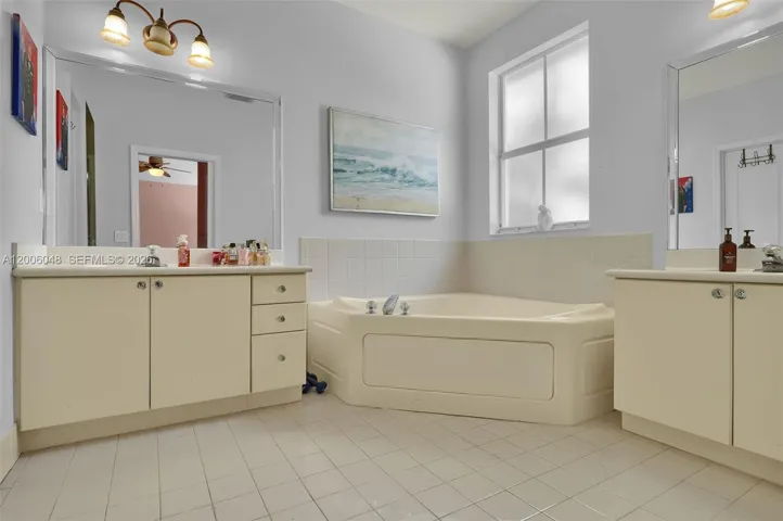 Welcome to a well maintained and quite gated community of Deer Creek! Direct entrance to a foyer with high ceilings and plenty of natural light. Beautiful window shades throughout the home. The first floor consists of formal room and dining room. Followed by kitchen with breakfast area and family room. The first floor also has 1 bedroom with full bathroom, very convenient for guest, in-laws or office space. Laundry room with brand new washer and dryer, along with 2 car garage. The second floor offers 4 additional spacious bedrooms with 2 full bathrooms. (Master comes with inverted ceiling, 2 walk-in closets, vanities, shower and roman tub. Backyard features tile throughout with a spacious pergola great for gatherings and entertainment. Don’t, miss out on this opportunity in owning this wonderful home!