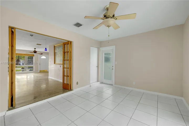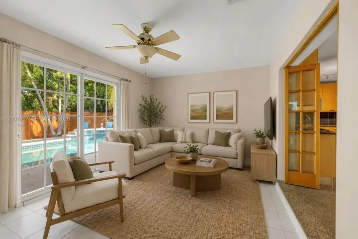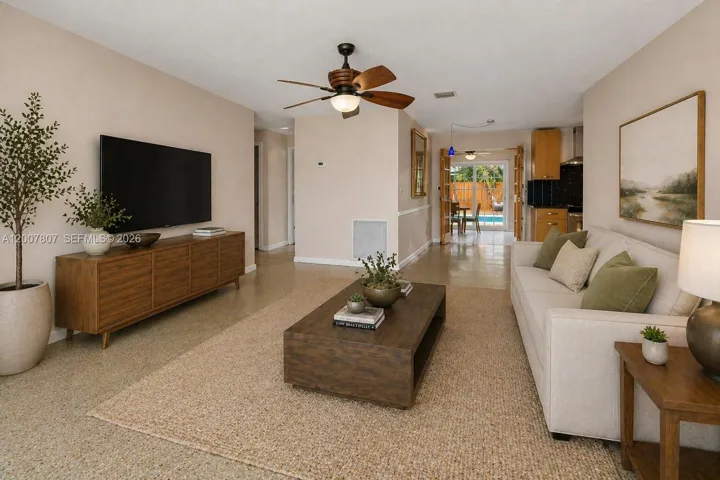 Attractive Florida Midcentury 3B/2B+Den home located in a quaint and quiet neighborhood, just minutes away from the beach and all the wonderful lifestyle Pompano has to offer. It features a family room separated by French doors from the living and dining area, with direct access to the yard and pool; A main bedroom with en-suite bathroom, also with direct access to the patio; Original terrazzo floors; An attached one-car garage that can easily be converted to an air conditioned area; A dedicated laundry room inside the house; Solar panels connection, and much more. A short distance to restaurants, supermarkets, shopping, entertainment. Near schools, main and interstate highways.