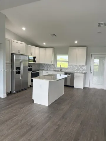 Beautiful 3-bedroom, 2-bath home built in 2023, offering a modern open-concept layout with abundant natural light. The kitchen features granite countertops, stainless steel appliances, and ample cabinet space. Spacious living and dining areas with wood-style flooring throughout. Situated on a generously sized lot with plenty of outdoor space. Impact-resistant windows and doors, metal roof, and tankless water heater provide added comfort and efficiency. Conveniently located near Highway 80 in the growing Banyan Village community. Also available for sale. Move-in available soon.