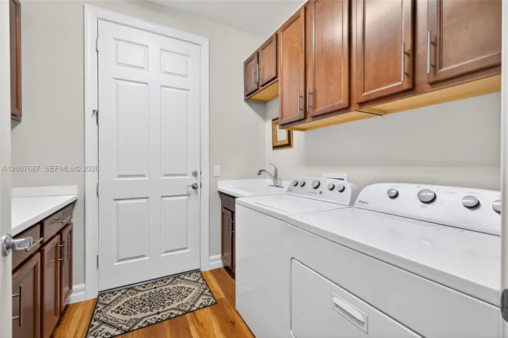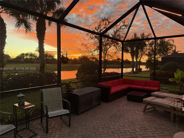 Experience refined living in this coveted PINNACLE model in the gated 55+ Del Webb Naples resort community, offering light-filled interiors and STUNNING LAKE AND GOLF COURSE VIEWS. This 3BR + Den, 3BA, 3-car home features HIGH CEILINGS, CROWN MOLDING, and waterproof COREtec LUXURY vinyl flooring throughout. The chef’s kitchen includes white cabinetry with PULL-OUTS, stainless appliances, reverse osmosis, WALK-IN PANTRY, coffee nook, & an impressive 10’+ Silestone quartz island with storage and seating perfect for entertaining. The den features CUSTUM BUILT-INS for a polished workspace. The OVERSIZED PRIMARY SUITE showcases tray ceilings and serene water and golf views, plus a SPA-LIKE BATH with makeup vanity, double sinks, step-in shower, private toilet with integrated bidet, & a LARGE WALK-IN CLOSET. Guests enjoy privacy with an EN-SUITE SECOND BEDROOM and a third bedroom with a CUSTOM MURPHY BED, both with WALK-IN CLOSETS—ideal for MULTI-GENERATIONAL LIVING. A well-appointed LAUNDRY ROOM offers EXTRA STORAGE, sink, & high-capacity machines. TRIPLE SLIDERS open to an OUTDOOR OASIS with expanded SCREENED lanai, custom WATERFALL, LED lighting, bubbling SPA, & gorgeous SOUTHWESTERN SUNSETS. Added peace of mind includes 2 ELECTRIC ROLLDOWN SHUTTERS, hurricane panels, 10,000W GENERATOR, EPOXY garage flooring, & abundant STORAGE. Enjoy Del Webb’s exceptional amenities & vibrant lifestyle of Ave Maria in this premier 55+ golf community. (Golf cart & select furnishings negotiable).