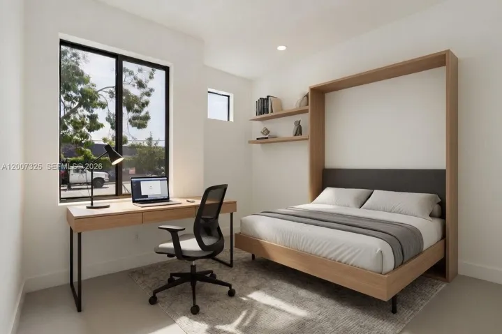 The split floor plan offers 3 bedrooms, 3 full baths, and an additional office/guest room. The bright, open living space includes a modern designer kitchen with Samsung appliance package and quartz dual waterfall-edged center island, 11-ft ceilings, LED high-efficiency lighting throughout, and a primary suite with his-and-her closets and sinks. Additional features include a 2-car garage and pre-wiring for high-quality AV systems in every room.
