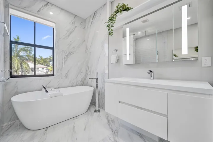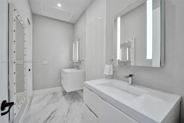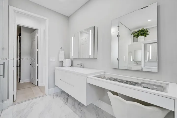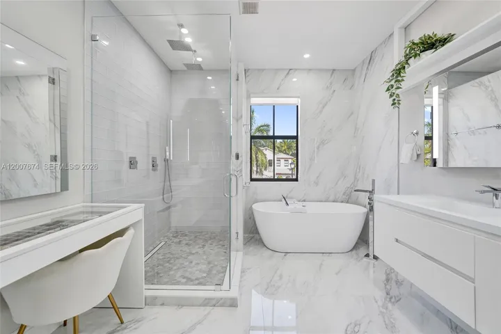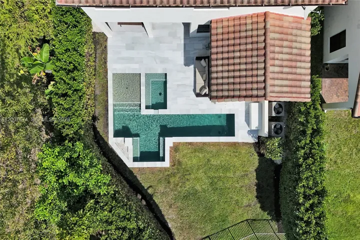 The exceptional backyard features marble flooring, a heated pool, jacuzzi, and beautifully landscaped space—perfect for entertaining or relaxing in privacy.