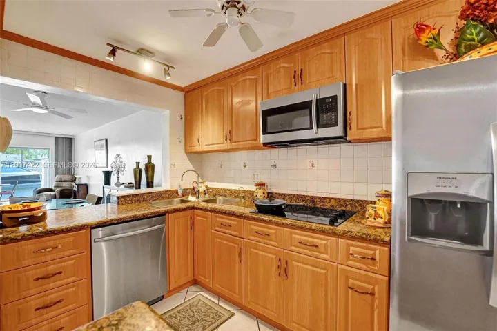 The open kitchen boasts a cooktop, dishwasher, refrigerator, and pantry, and flows seamlessly into the living space, perfect for entertaining. Ceramic floors throughout and hurricane shutters on all windows provide both style and peace of mind. Step outside to your private patio for morning coffee or evening relaxation.