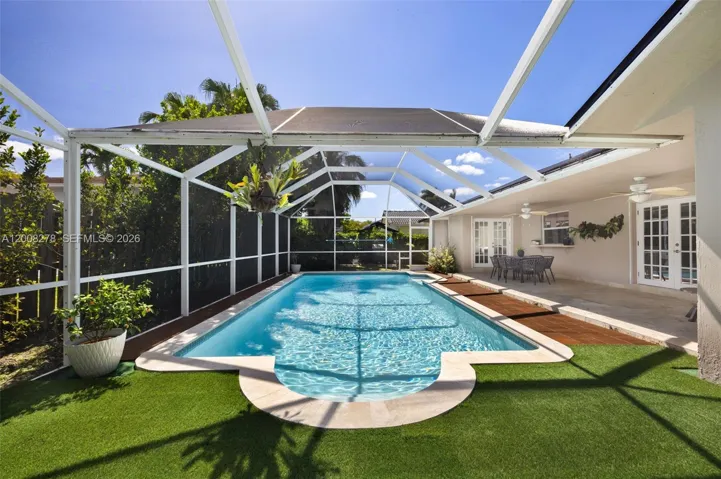 Turnkey Saga Bay pool home with over 2,500 SF under air and nearly 3,000 SF total—one of the largest floor plans in the community. This 3-bedroom, 2.5-bath residence features a bright, open layout with volume ceilings, tile throughout, and a modern kitchen with stainless steel appliances flowing into the main living areas. A fully finished extra room delivers flexible space for a home office, media room, gym, or playroom—offering functionality well beyond the recorded 2,000 SF. Newer roof, updated bathrooms, and custom closet systems make this one truly move-in ready. Step outside to a private backyard oasis with synthetic turf, a sparkling pool, and dedicated BBQ area—perfect for year-round entertaining. Saga Bay offers lake access for kayaking and paddleboarding, lighted pickleball and tennis courts, a 5-acre park with playground, walking trails, and community security—all with one of the lowest HOAs in Cutler Bay. Minutes to A-rated schools, Black Point Marina, and US-1.