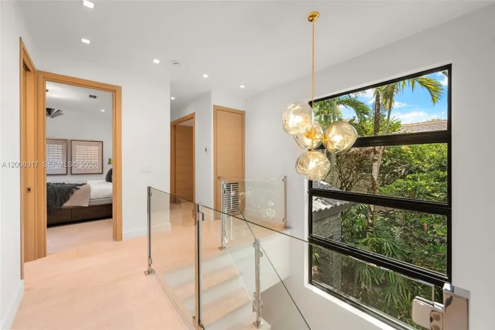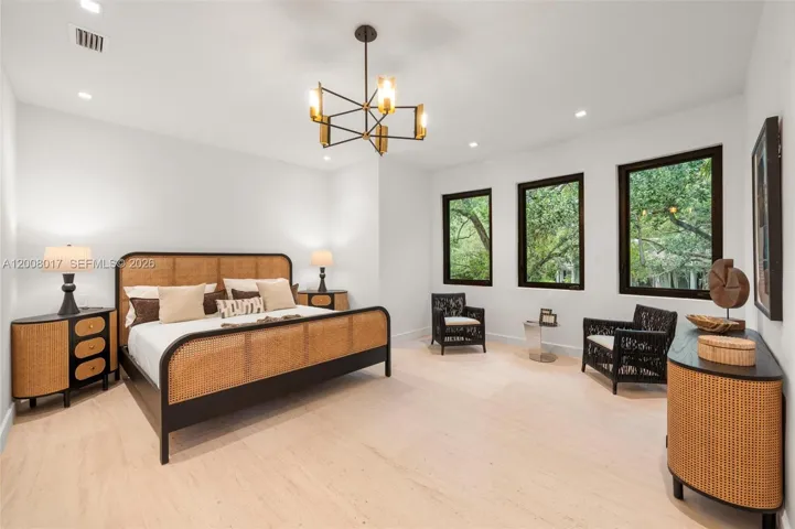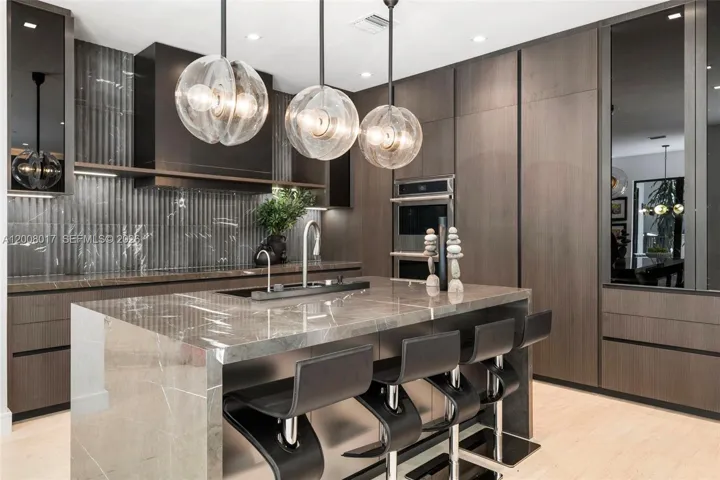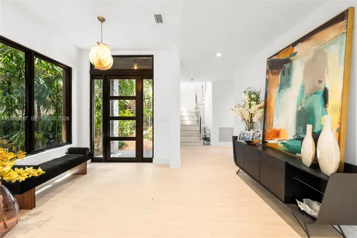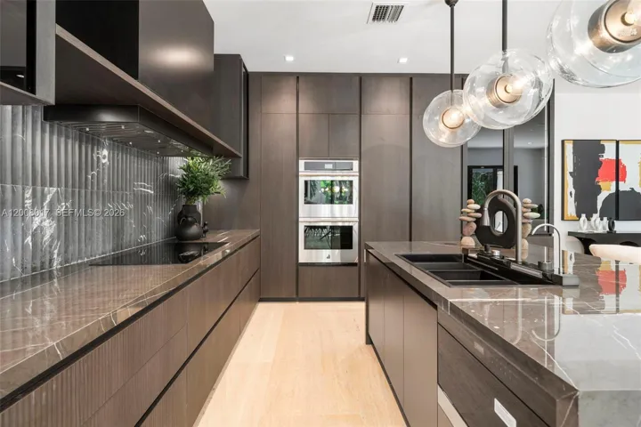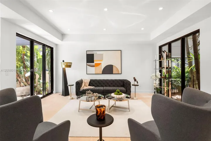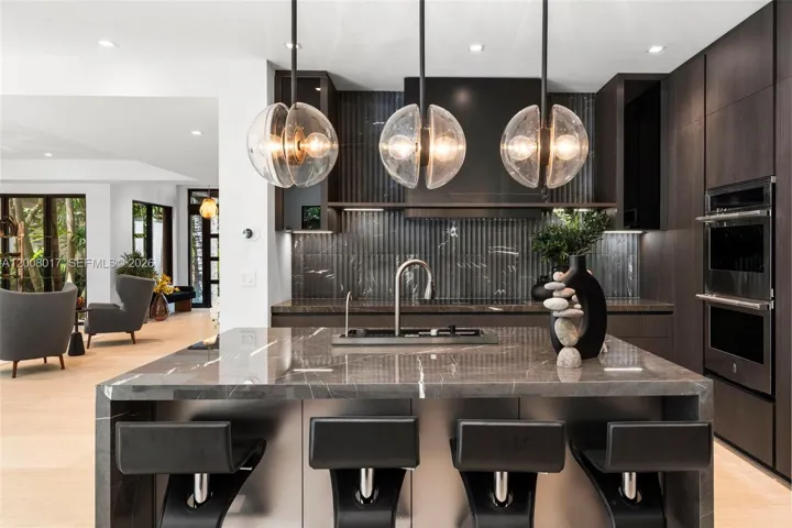 Tucked on a truly enchanting, oak-shaded lane just off historic Sunset Drive, this stately 2-story contemporary residence enjoys a premier location at the convergence of Coral Gables, Ponce-Davis & High Pines. Its 5 bedrooms & 4 baths were completely reimagined w/ a top-to-bottom renovation. Every modern detail, high-end finish & statement fixture is brand new. Sophisticated interiors feature elegant limestone flooring, a granite ethanol fireplace, impact windows & doors, striking wall-hung marble countertops, stylish backlit vanities accenting spa-inspired baths, custom-built closets & thoughtfully placed recessed lighting throughout. Downstairs: The brand-new kitchen features sleek custom cabinetry, all-new high-end appliances & a charming sunlit breakfast area. Formal living & dining rooms & a spacious family room flow seamlessly, opening to the redesigned backyard. A well-placed bedroom, full bath, laundry & 2-car garage complete the main level. Upstairs: A grand primary suite features a sitting area, in-room wet bar w/ fridge, ultra luxurious bathroom w/ onyx feature wall, marble throughout, freestanding tub, separate his & hers waterclosets & oversized custom closets w/ 2 entries. 2 en-suite bedrooms + 4th bedroom/office complete the level. Outdoors: A limestone patio, freeform pool, pergola & lush tropical landscaping create a private oasis. An exquisite, turnkey home in an idyllic neighborhood just minutes from the Gables, Grove & South Miami