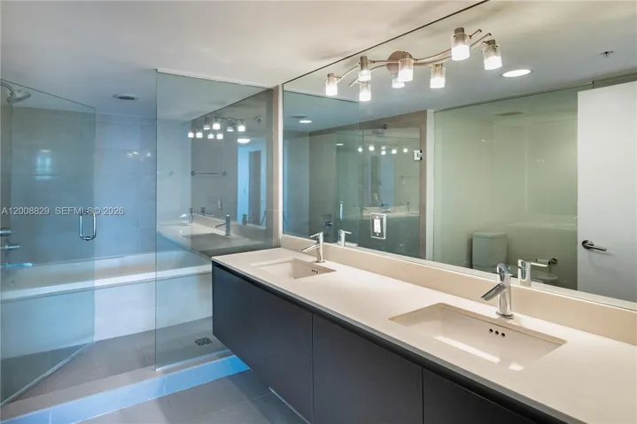 Spacious and bright 2/2 luxury apartment with amazing bay views! Located one block from the beach, this unit features top of the line appliances, Italian kitchen and quartz countertops. Floors are Italian porcelain tile. Custom made closets, motorized shades and black-outs. The Building has full amenities: pool, spa, gym, terrace overlooking the ocean, concierge, security, valet parking and more. 2 SELF PARK ASSIGNED PARKING SPACES.