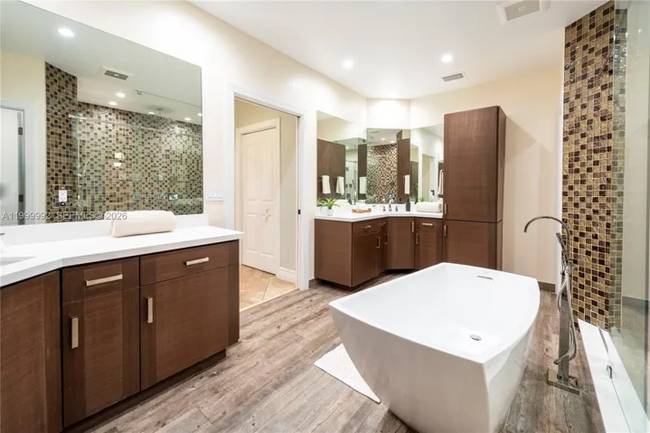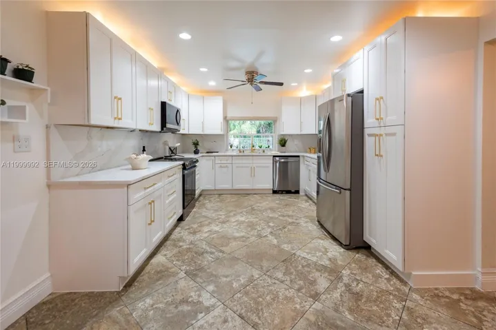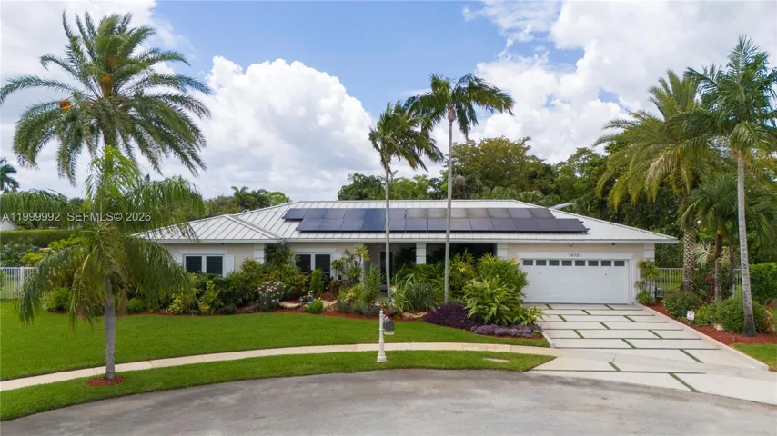 A rare opportunity to own a beautifully upgraded home tucked away at the end of a quiet cul-de-sac in Weston’s desirable Bonaventure community. From the moment you arrive, you’ll appreciate the privacy, oversized lot, and thoughtful upgrades throughout. The home features a brand-new metal roof, 56 owned Tesla solar panels with 4 Powerwalls (not leased), and full impact windows and doors—offering both peace of mind and energy efficiency. Step inside to find a warm and inviting layout with an upgraded kitchen and bathrooms, newer flooring, plantation shutters, and a seamless flow into the main living and entertaining areas. Just beyond, the backyard truly becomes the highlight—designed for both relaxation and entertaining, with a sparkling pool, waterfall, sun shelf with umbrella, and color-changing lighting. The space is completed by a summer kitchen, lush tropical landscaping, ambient lighting, and a variety of fruit trees, all within a private fenced setting. Additional features include CAT 5 wiring, security cameras, and partial lake exposure that enhances the home’s tranquil feel. No HOA. Bonaventure Town Center Club membership required ($405/year), offering access to exceptional amenities including clubhouse, gym, pools, theater, tennis, pickleball, basketball, bowling, and more.