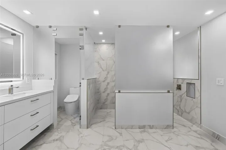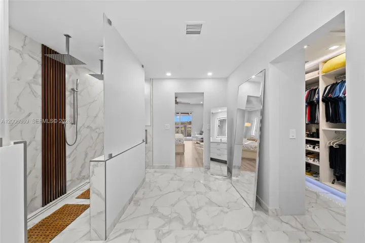 This completely reimagined lakefront residence has been fully remodeled in 2023, 5 bedrooms 4 and 1/2 bathrooms with over 2,900 sqft2 of AC living area. Offering the feel of a brand-new home with every major component redone, from plumbing and electrical to the roof, pool, and interior finishes. The clean, modern design creates a bright, open layout with thoughtfully finished interiors. Upon entry, a striking floating metal and wood staircase sets the tone, perfectly framed by stunning water views. The kitchen was designed for both daily living and entertaining, featuring smart appliances, a wine bar, and sleek cabinetry with ample storage. The main living areas open up through impressive 20-foot floor-to-ceiling sliding glass doors, creating a natural transition to the outdoor space while bringing in constant light and unobstructed lake views. The primary suite is spacious and private, with a large bathroom designed with a spa-like feel and a custom boutique-style closet. Additional features: EV charger, owned solar, gas summer kitchen, tankless water heater, 200-amp underground service, Cat-5 wiring, and expanded paver driveway. Sophistication, smart tech, and resort-style living in Weston’s premier