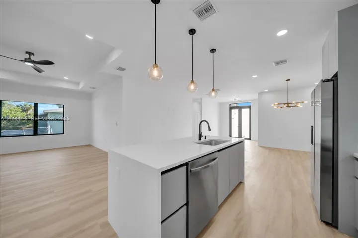 Beautiful new construction home with no HOA restrictions, featuring 3 bedrooms plus a den and 2 full bathrooms, along with a private guest suite that includes 1 bedroom, 1 bathroom, and a separate kitchen, offering flexible living arrangements. The home offers a modern and functional open floor plan with a spacious living area, dining space, and a well-designed kitchen suitable for everyday living and entertaining. Additional features include impact-resistant windows and doors, a garage, and flexible space that can be used as a home office or additional living area. Situated on a 10,000 sq ft lot, the property provides ample outdoor space and is conveniently located near I-75 with access to Sarasota beaches, as well as shopping, dining, and schools.