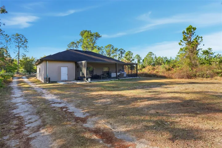 One or more photo(s) has been virtually staged, AI generated, or rendered. Discover this 3-bedroom, 2-bath single-family home built in 2019, situated on a 1.14-acre lot in the highly sought-after Golden Gate Estates. This move-in ready property features a bright and functional split-floor layout and includes solar panels, providing excellent energy efficiency and reduced utility costs. The home is equipped with a dual A/C system, offering enhanced comfort and efficient temperature control throughout the property. This property also includes an efficiency unit, ideal for generating additional rental income or easily converting into a fourth bedroom, guest suite, or private living space. The spacious primary suite features a dedicated office area, perfect for working from home or creating a private retreat. The lot is clean and cleared, offering ample space to build a custom pool, create your dream outdoor living area, or expand the property to suit your needs. Enjoy exceptional privacy and endless possibilities. Ideally located near key Naples destinations such as Publix at Randall Blvd, Founders Square, Corkscrew Island Regional Park, Ave Maria, top-rated schools, and just a short drive to shopping, dining, and Naples beaches.
