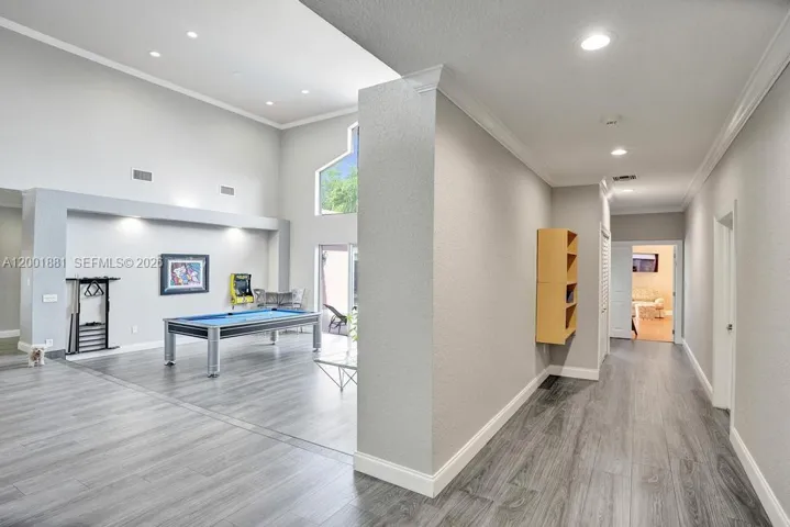 Located in The Landings, with access to all of Parkland’s Grade A schools. Set on an oversized 12,367 sq. ft. corner lot, this bright 5-bed, 3.5-bath one-story home is built in a U-shape around a private pool viewed from nearly every room.
